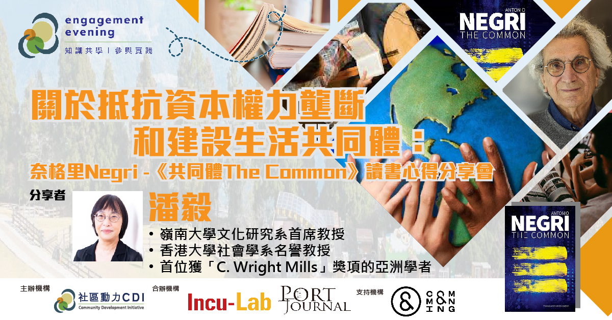 這次研讀 Antonio Negri的《The Common》,正是想一同了解Negri對共同體的想法,讓大家可思考、討論在生活、經濟和文化上如何可脫離資本壟斷的系統,讓社區和市民過上自主自由的經濟和社會生活。