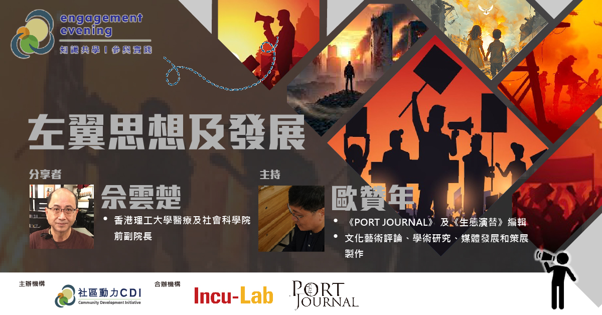 「左翼思想及發展」是一個入門和進階兼顧的講座,參加者將理解左翼並非單一立場,而是涵蓋不同理論取向與政治策略的思想譜系。講座將從左翼流派的差異開始,進一步進入馬克思的核心思想,掌握左翼分析社會與批判資本主義的基本方法;最後以葛蘭西為主軸,理解左翼如何把文化、教育與意義生產納入政治分析,探討資本霸權運作及社會變革的路徑。